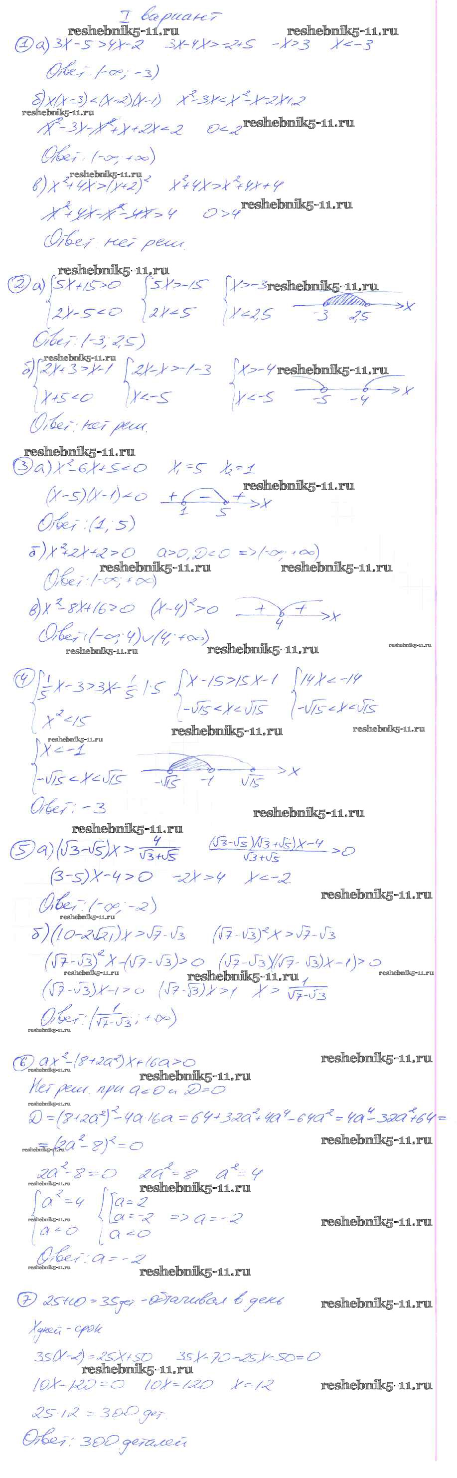Готовая домашняя работа с ответами по Алгебре за 9 класс Потапов, Шевкин Дидактические материалы МГУ - школе Просвещение 2010 ФГОС - КР №1 вариант 1