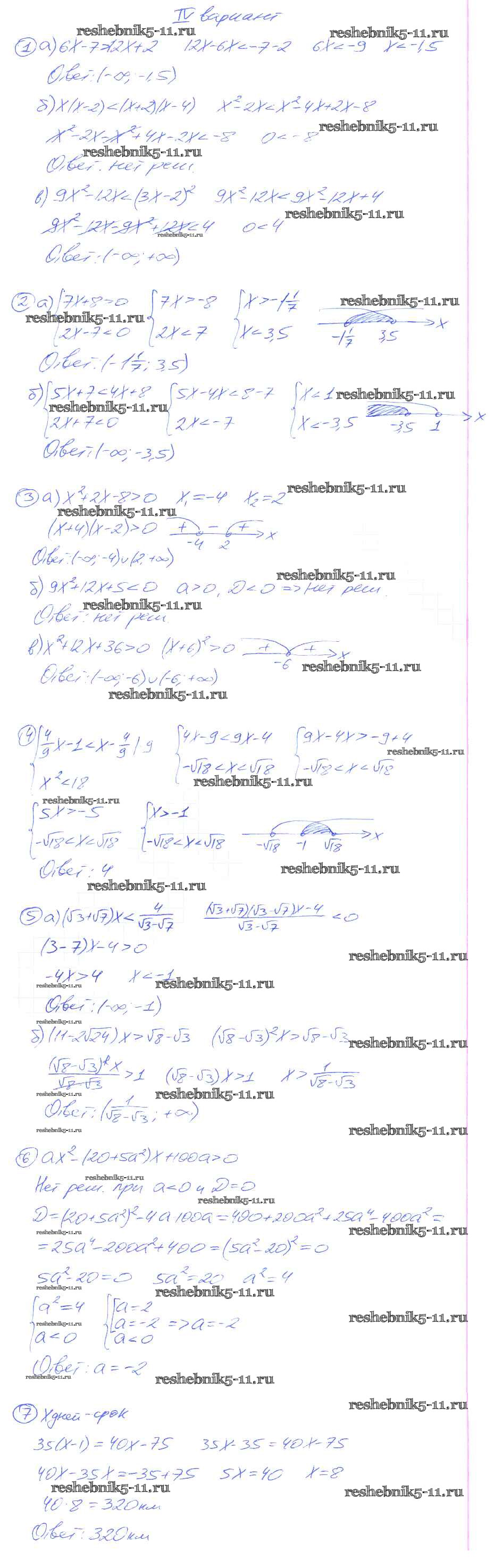 Готовая домашняя работа с ответами по Алгебре за 9 класс Потапов, Шевкин Дидактические материалы МГУ - школе Просвещение 2010 ФГОС - КР №1 вариант 4