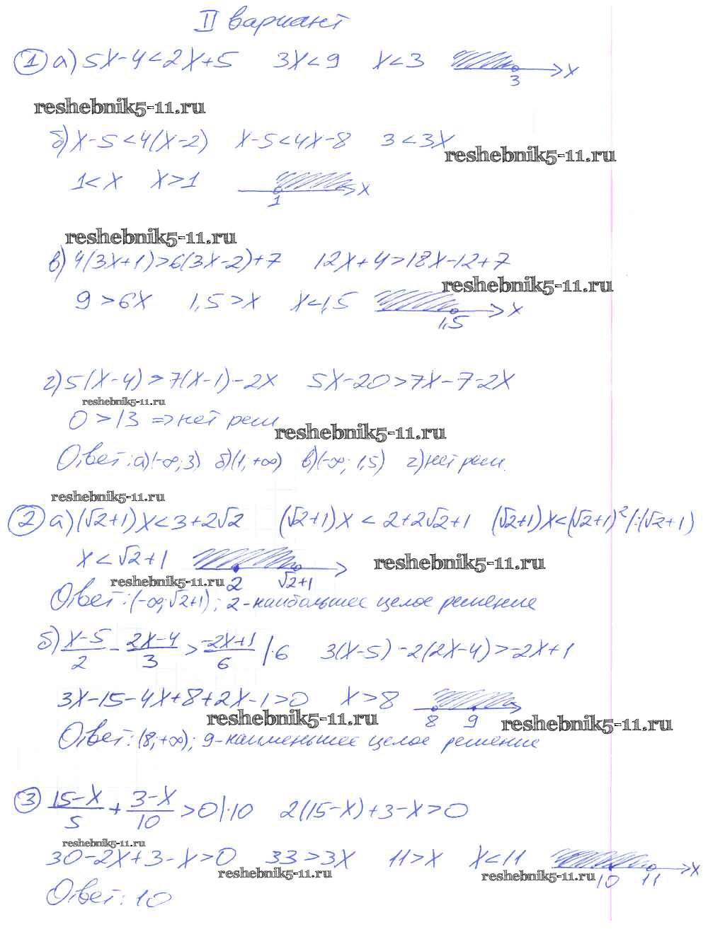 Готовая домашняя работа с ответами по Алгебре за 9 класс Потапов, Шевкин Дидактические материалы МГУ - школе Просвещение 2010 ФГОС - СР №1. Линейные неравенства с одним неизвестным вариант 2