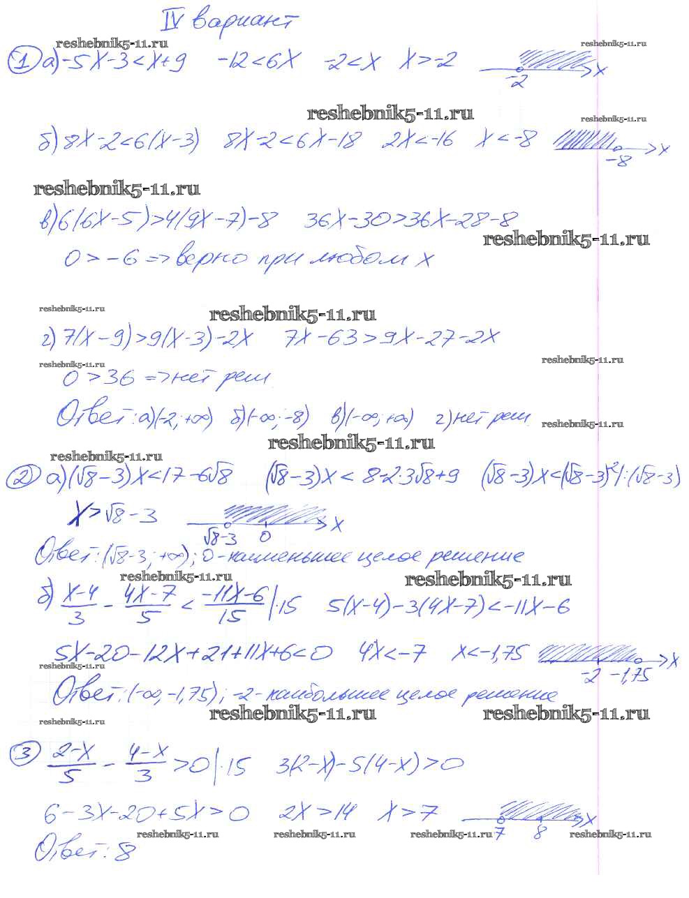 Готовая домашняя работа с ответами по Алгебре за 9 класс Потапов, Шевкин Дидактические материалы МГУ - школе Просвещение 2010 ФГОС - СР №1. Линейные неравенства с одним неизвестным вариант 4