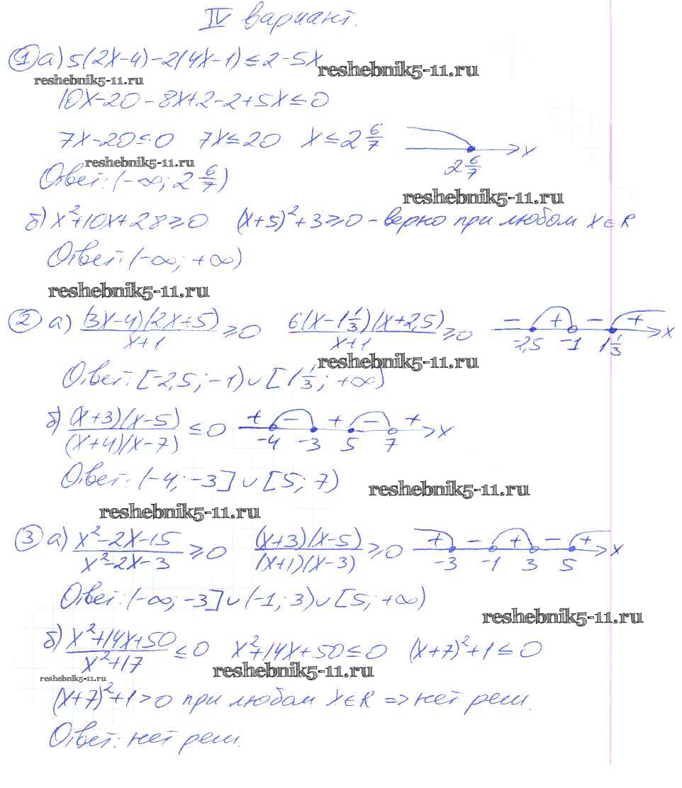 Готовая домашняя работа с ответами по Алгебре за 9 класс Потапов, Шевкин Дидактические материалы МГУ - школе Просвещение 2010 ФГОС - СР №10. Нестрогие неравенства вариант 4