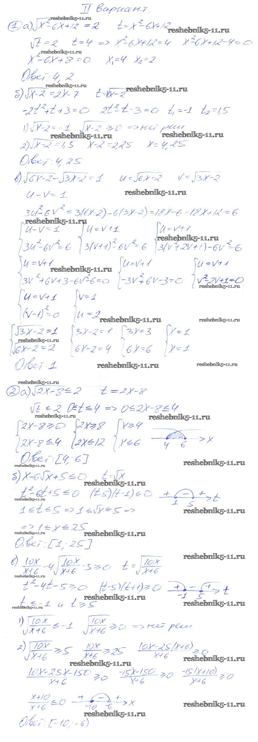 Готовая домашняя работа с ответами по Алгебре за 9 класс Потапов, Шевкин Дидактические материалы МГУ - школе Просвещение 2010 ФГОС - СР №13. Замена неизвестного при решении иррациональных уравнений и неравенств вариант 2