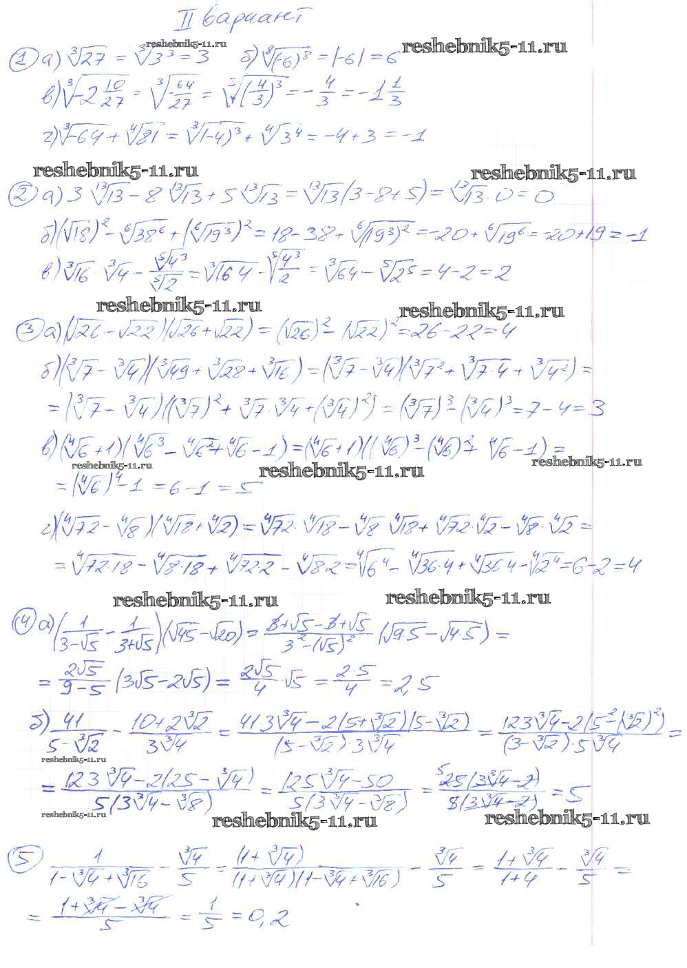 Готовая домашняя работа с ответами по Алгебре за 9 класс Потапов, Шевкин Дидактические материалы МГУ - школе Просвещение 2010 ФГОС - СР №14. Корень степени n вариант 2