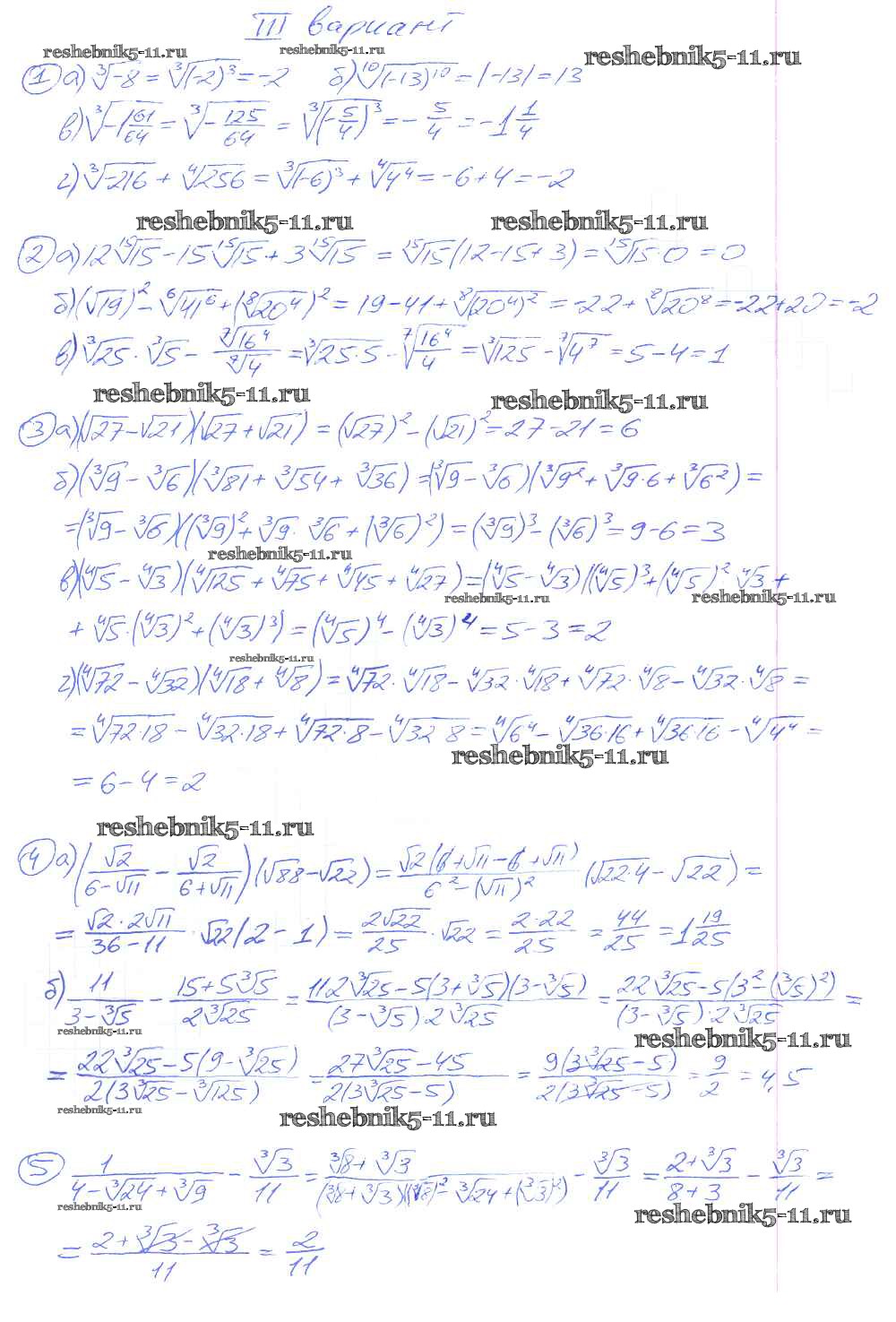 Готовая домашняя работа с ответами по Алгебре за 9 класс Потапов, Шевкин Дидактические материалы МГУ - школе Просвещение 2010 ФГОС - СР №14. Корень степени n вариант 3
