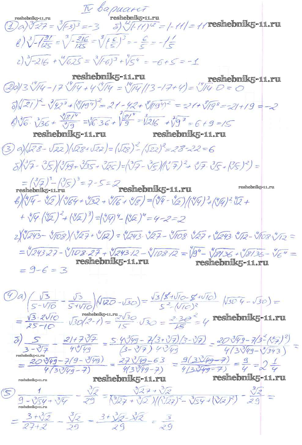 Готовая домашняя работа с ответами по Алгебре за 9 класс Потапов, Шевкин Дидактические материалы МГУ - школе Просвещение 2010 ФГОС - СР №14. Корень степени n вариант 4