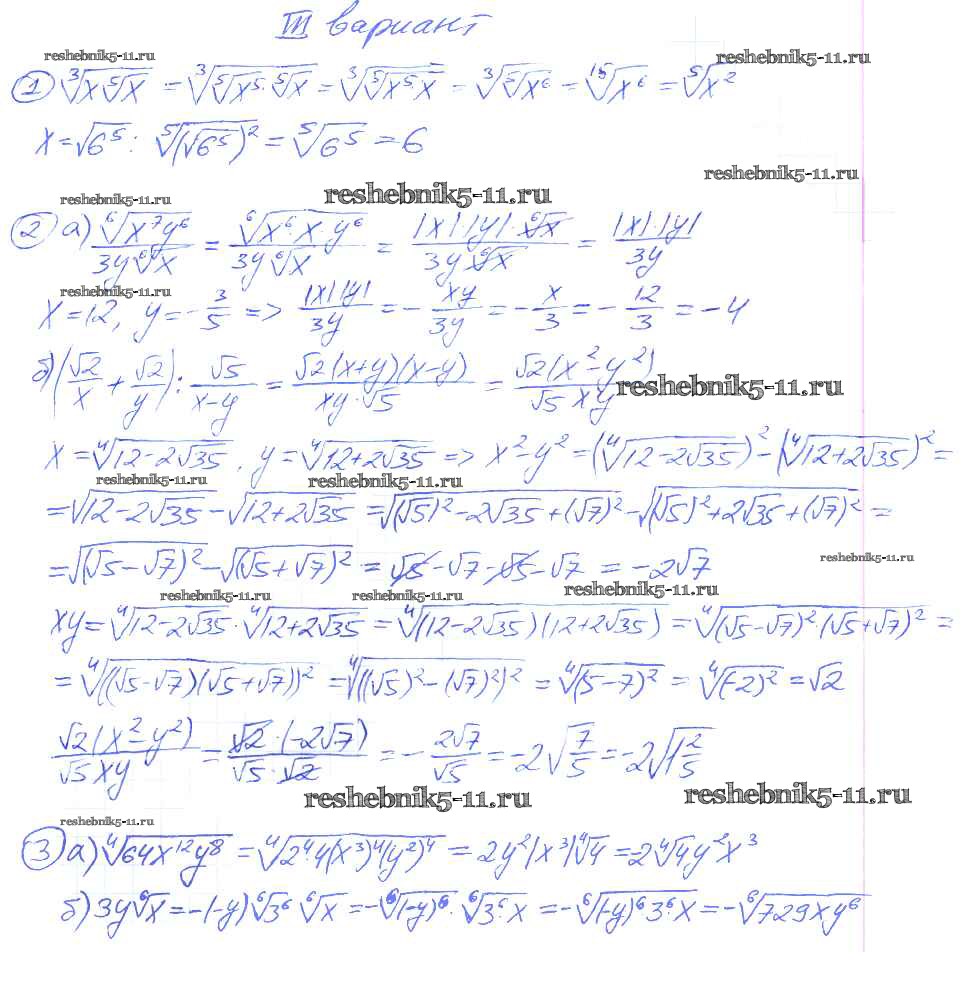 Готовая домашняя работа с ответами по Алгебре за 9 класс Потапов, Шевкин Дидактические материалы МГУ - школе Просвещение 2010 ФГОС - СР №15. Корень степени n вариант 3