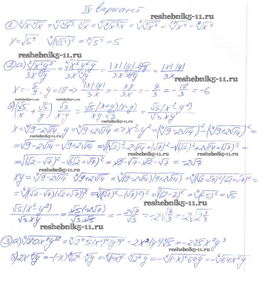 Готовая домашняя работа с ответами по Алгебре за 9 класс Потапов, Шевкин Дидактические материалы МГУ - школе Просвещение 2010 ФГОС - СР №15. Корень степени n вариант 4