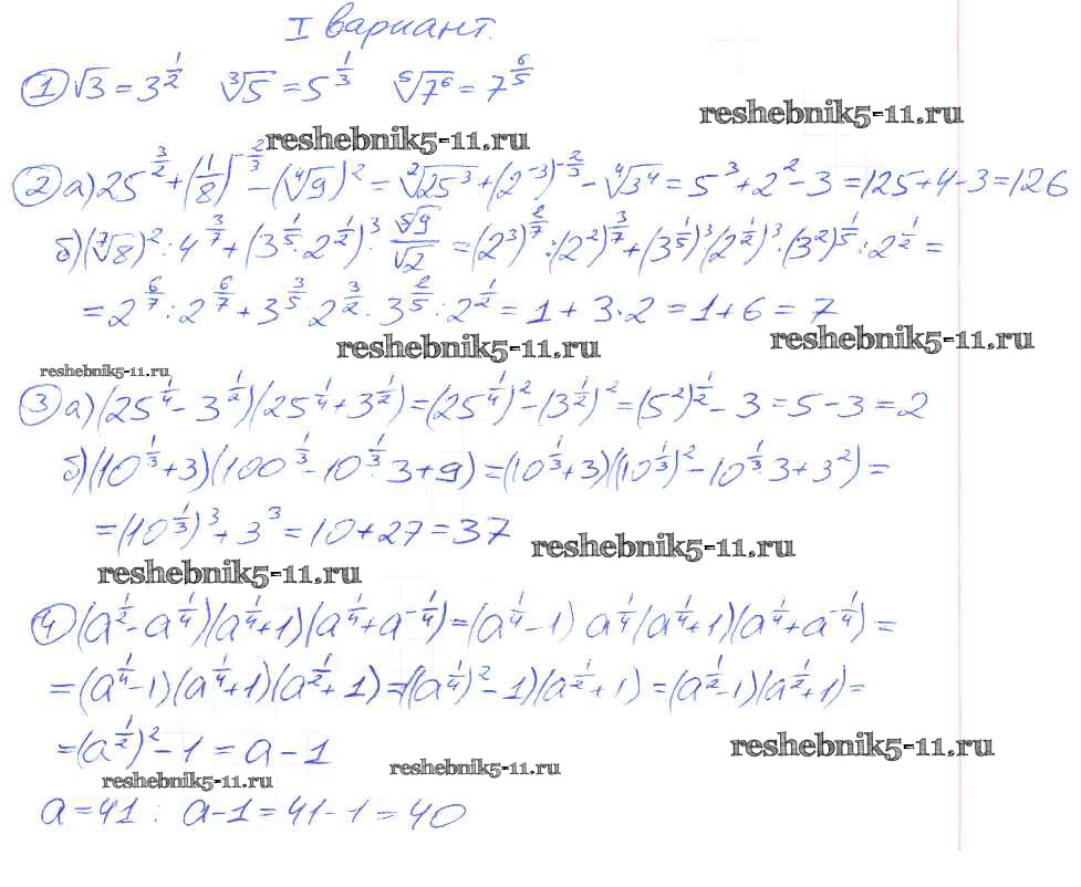 Готовая домашняя работа с ответами по Алгебре за 9 класс Потапов, Шевкин Дидактические материалы МГУ - школе Просвещение 2010 ФГОС - СР №16. Степень с рациональным показателем вариант 1