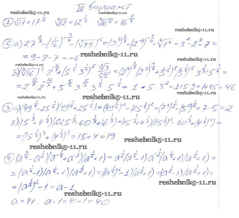 Готовая домашняя работа с ответами по Алгебре за 9 класс Потапов, Шевкин Дидактические материалы МГУ - школе Просвещение 2010 ФГОС - СР №16. Степень с рациональным показателем вариант 3