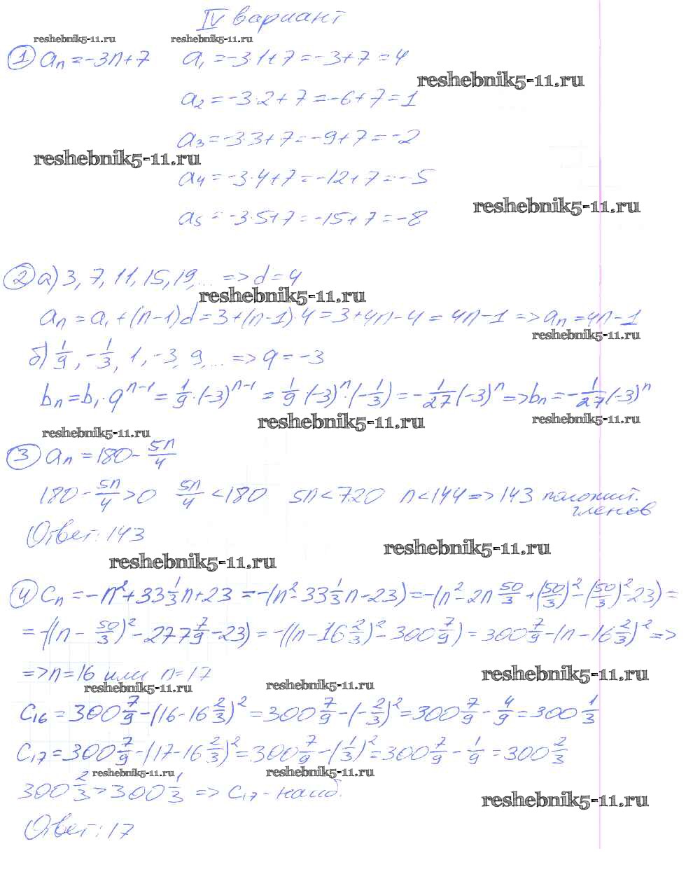 Готовая домашняя работа с ответами по Алгебре за 9 класс Потапов, Шевкин Дидактические материалы МГУ - школе Просвещение 2010 ФГОС - СР №17. Числовые последовательности вариант 4