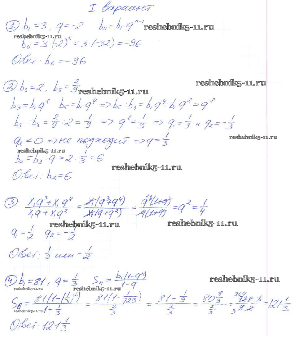 Готовая домашняя работа с ответами по Алгебре за 9 класс Потапов, Шевкин Дидактические материалы МГУ - школе Просвещение 2010 ФГОС - СР №19. Геометрическая прогрессия вариант 1