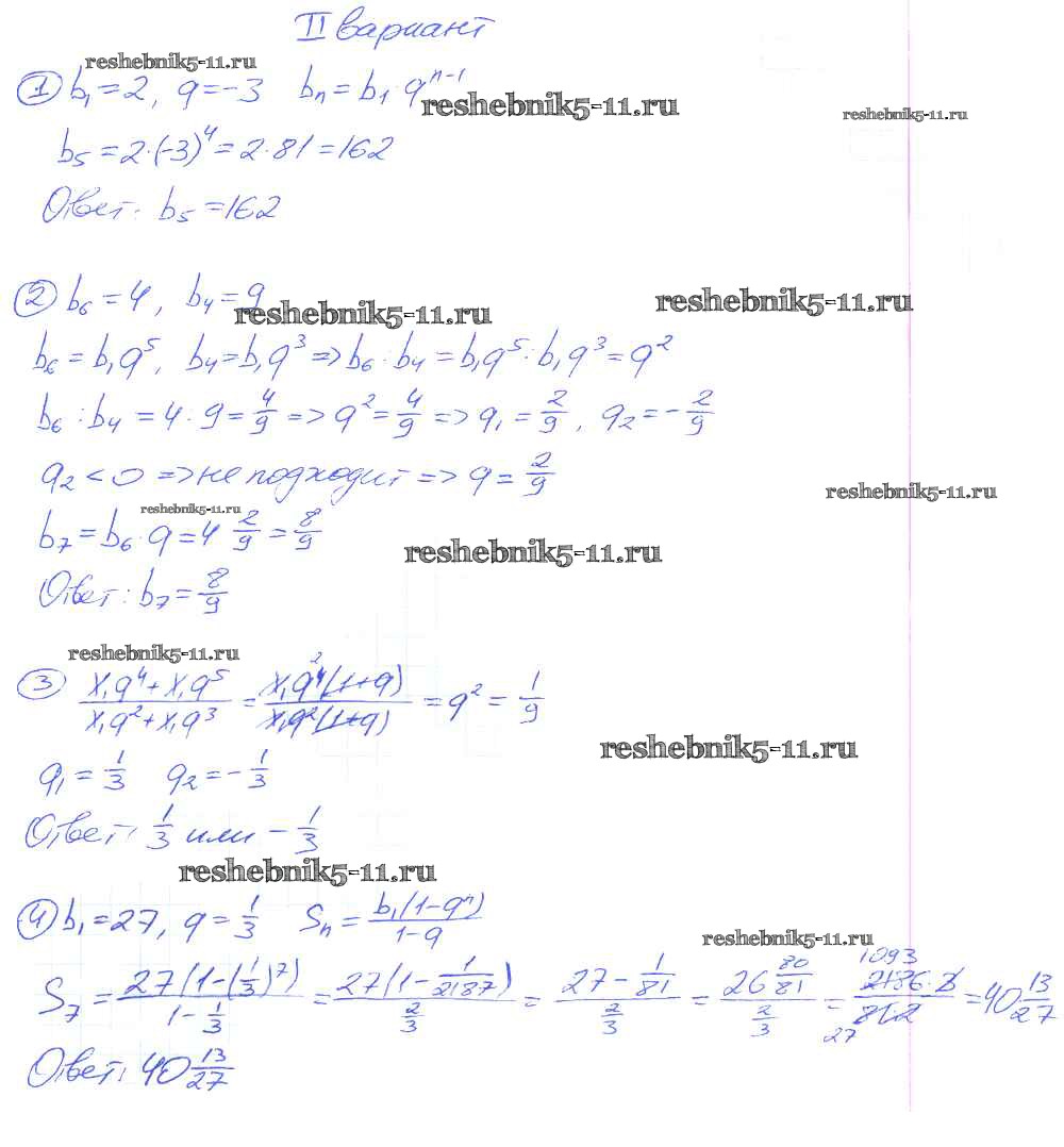 Готовая домашняя работа с ответами по Алгебре за 9 класс Потапов, Шевкин Дидактические материалы МГУ - школе Просвещение 2010 ФГОС - СР №19. Геометрическая прогрессия вариант 2
