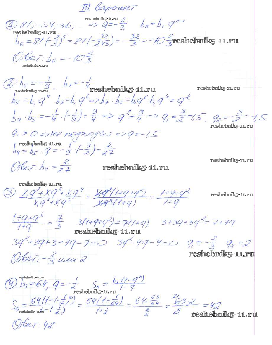 Готовая домашняя работа с ответами по Алгебре за 9 класс Потапов, Шевкин Дидактические материалы МГУ - школе Просвещение 2010 ФГОС - СР №19. Геометрическая прогрессия вариант 3