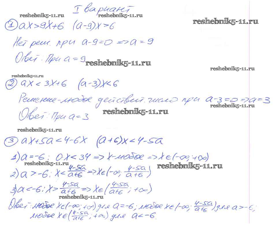 Готовая домашняя работа с ответами по Алгебре за 9 класс Потапов, Шевкин Дидактические материалы МГУ - школе Просвещение 2010 ФГОС - СР №2. Линейные неравенства с параметром вариант 1