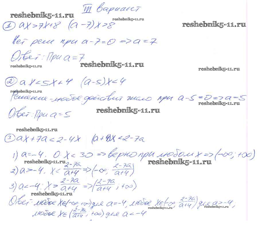 Готовая домашняя работа с ответами по Алгебре за 9 класс Потапов, Шевкин Дидактические материалы МГУ - школе Просвещение 2010 ФГОС - СР №2. Линейные неравенства с параметром вариант 3