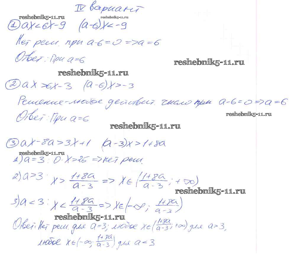 Готовая домашняя работа с ответами по Алгебре за 9 класс Потапов, Шевкин Дидактические материалы МГУ - школе Просвещение 2010 ФГОС - СР №2. Линейные неравенства с параметром вариант 4