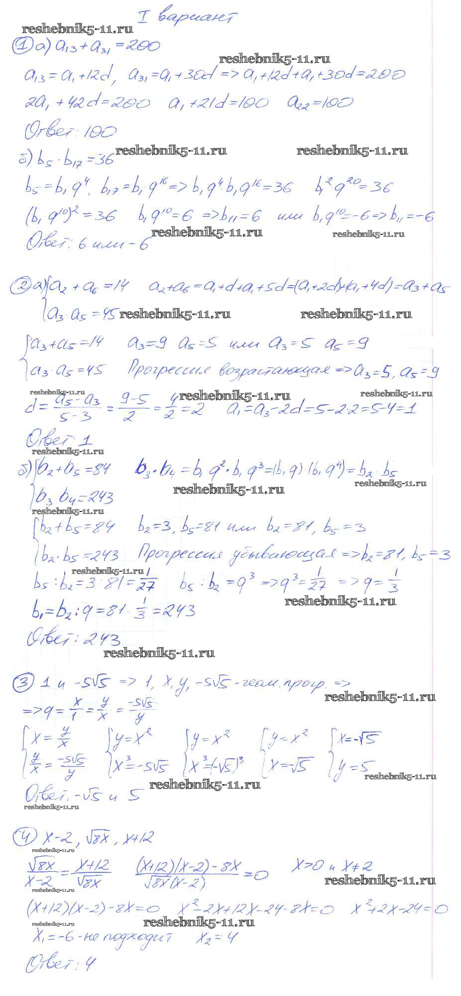 Готовая домашняя работа с ответами по Алгебре за 9 класс Потапов, Шевкин Дидактические материалы МГУ - школе Просвещение 2010 ФГОС - СР №20. Задачи на прогрессии вариант 1