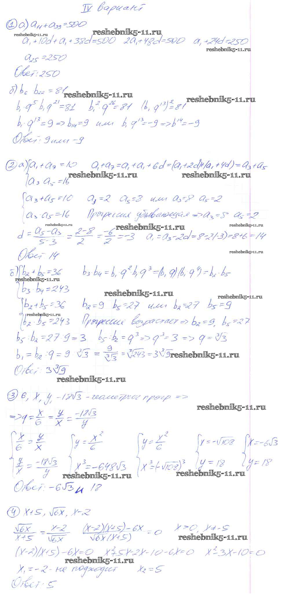 Готовая домашняя работа с ответами по Алгебре за 9 класс Потапов, Шевкин Дидактические материалы МГУ - школе Просвещение 2010 ФГОС - СР №20. Задачи на прогрессии вариант 4