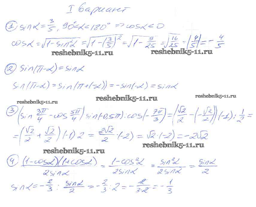 Готовая домашняя работа с ответами по Алгебре за 9 класс Потапов, Шевкин Дидактические материалы МГУ - школе Просвещение 2010 ФГОС - СР №24. Формулы для синуса и косинуса угла вариант 1