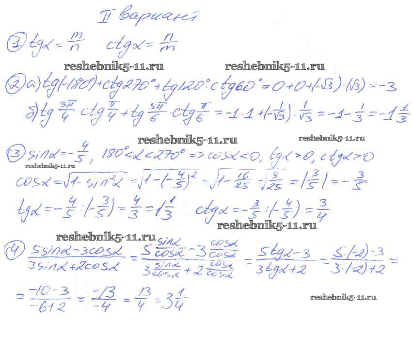 Готовая домашняя работа с ответами по Алгебре за 9 класс Потапов, Шевкин Дидактические материалы МГУ - школе Просвещение 2010 ФГОС - СР №25. Тангенс и котангенс угла вариант 2