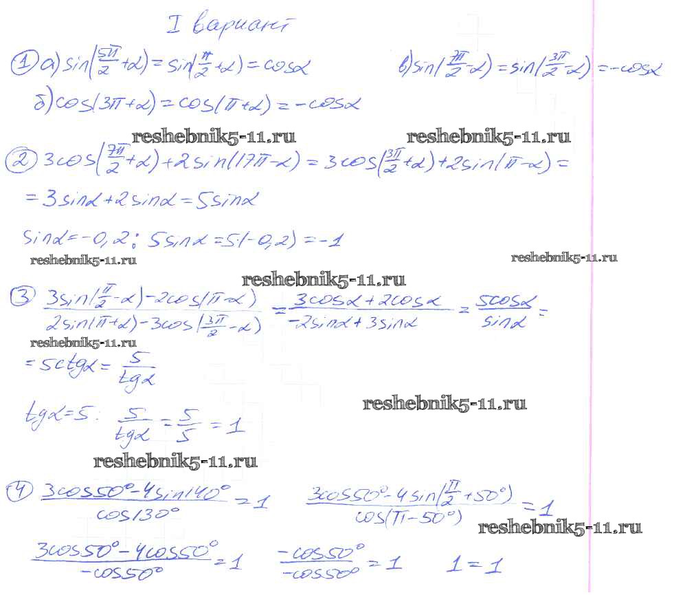 Готовая домашняя работа с ответами по Алгебре за 9 класс Потапов, Шевкин Дидактические материалы МГУ - школе Просвещение 2010 ФГОС - СР №27. Формулы приведения для синуса и косинуса вариант 1