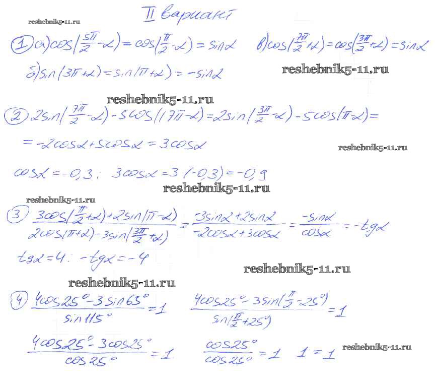 Готовая домашняя работа с ответами по Алгебре за 9 класс Потапов, Шевкин Дидактические материалы МГУ - школе Просвещение 2010 ФГОС - СР №27. Формулы приведения для синуса и косинуса вариант 2
