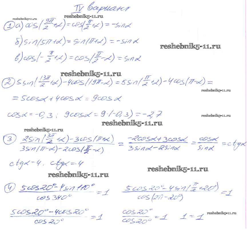 Готовая домашняя работа с ответами по Алгебре за 9 класс Потапов, Шевкин Дидактические материалы МГУ - школе Просвещение 2010 ФГОС - СР №27. Формулы приведения для синуса и косинуса вариант 4