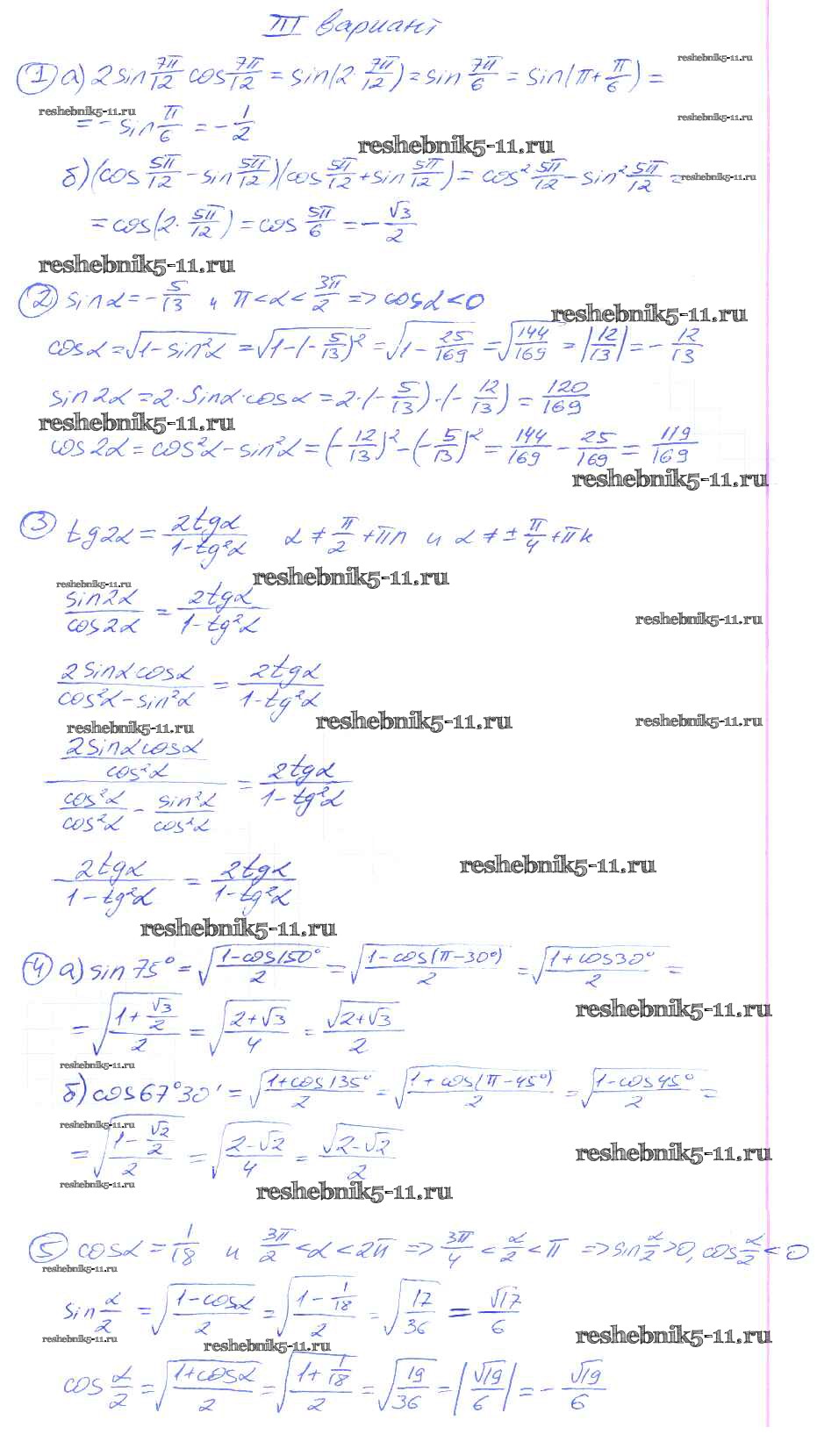 Готовая домашняя работа с ответами по Алгебре за 9 класс Потапов, Шевкин Дидактические материалы МГУ - школе Просвещение 2010 ФГОС - СР №29. Формулы для двойных и половинных углов вариант 3