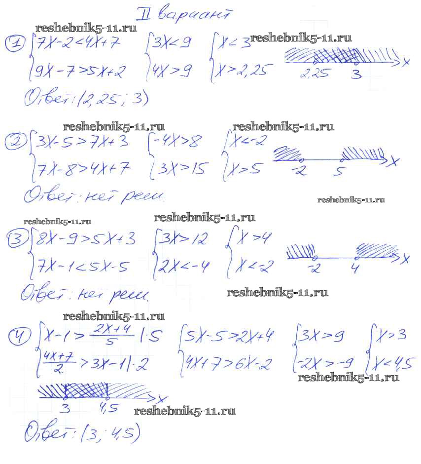Готовая домашняя работа с ответами по Алгебре за 9 класс Потапов, Шевкин Дидактические материалы МГУ - школе Просвещение 2010 ФГОС - СР №3. Системы линейных неравенств с одним неизвестным вариант 2