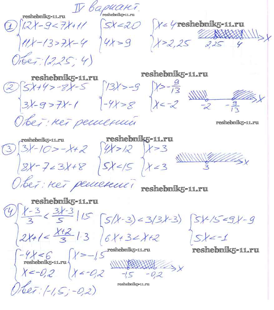Готовая домашняя работа с ответами по Алгебре за 9 класс Потапов, Шевкин Дидактические материалы МГУ - школе Просвещение 2010 ФГОС - СР №3. Системы линейных неравенств с одним неизвестным вариант 4