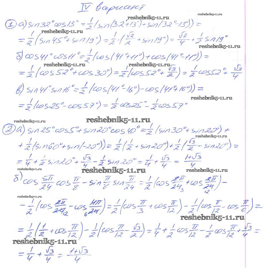 Готовая домашняя работа с ответами по Алгебре за 9 класс Потапов, Шевкин Дидактические материалы МГУ - школе Просвещение 2010 ФГОС - СР №30. Произведения синусов и косинусов вариант 4