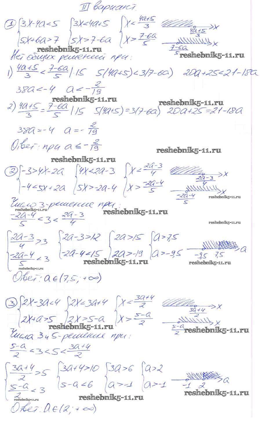 Готовая домашняя работа с ответами по Алгебре за 9 класс Потапов, Шевкин Дидактические материалы МГУ - школе Просвещение 2010 ФГОС - СР №4. Системы линейных неравенств с параметром вариант 3