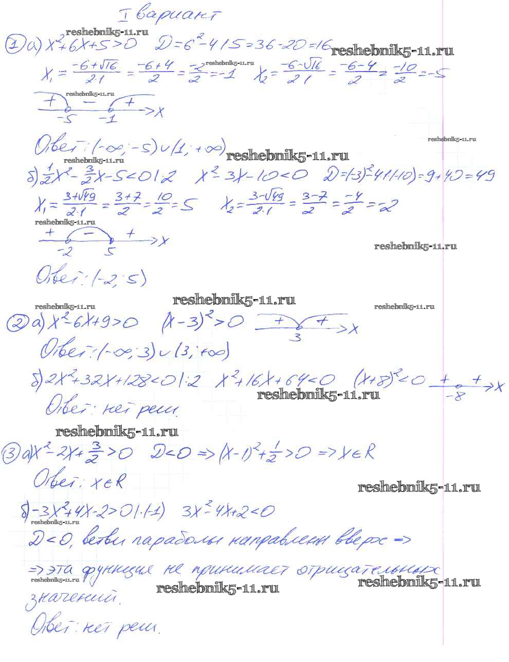 Готовая домашняя работа с ответами по Алгебре за 9 класс Потапов, Шевкин Дидактические материалы МГУ - школе Просвещение 2010 ФГОС - СР №5. Неравенства второй степени вариант 1