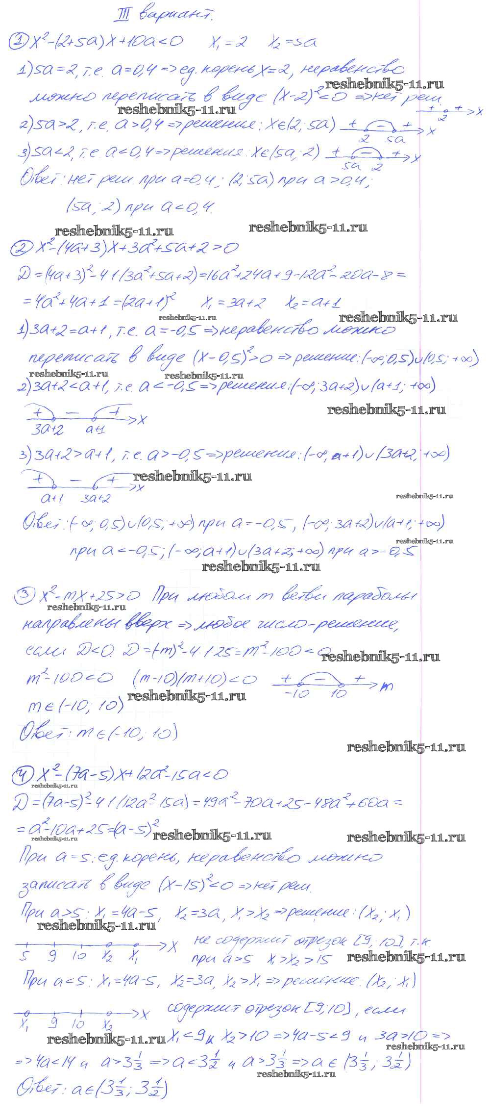 Готовая домашняя работа с ответами по Алгебре за 9 класс Потапов, Шевкин Дидактические материалы МГУ - школе Просвещение 2010 ФГОС - СР №6. Неравенства второй степени с параметром вариант 3