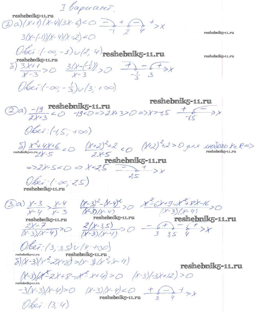 Готовая домашняя работа с ответами по Алгебре за 9 класс Потапов, Шевкин Дидактические материалы МГУ - школе Просвещение 2010 ФГОС - СР №7. Рациональные неравенства вариант 1