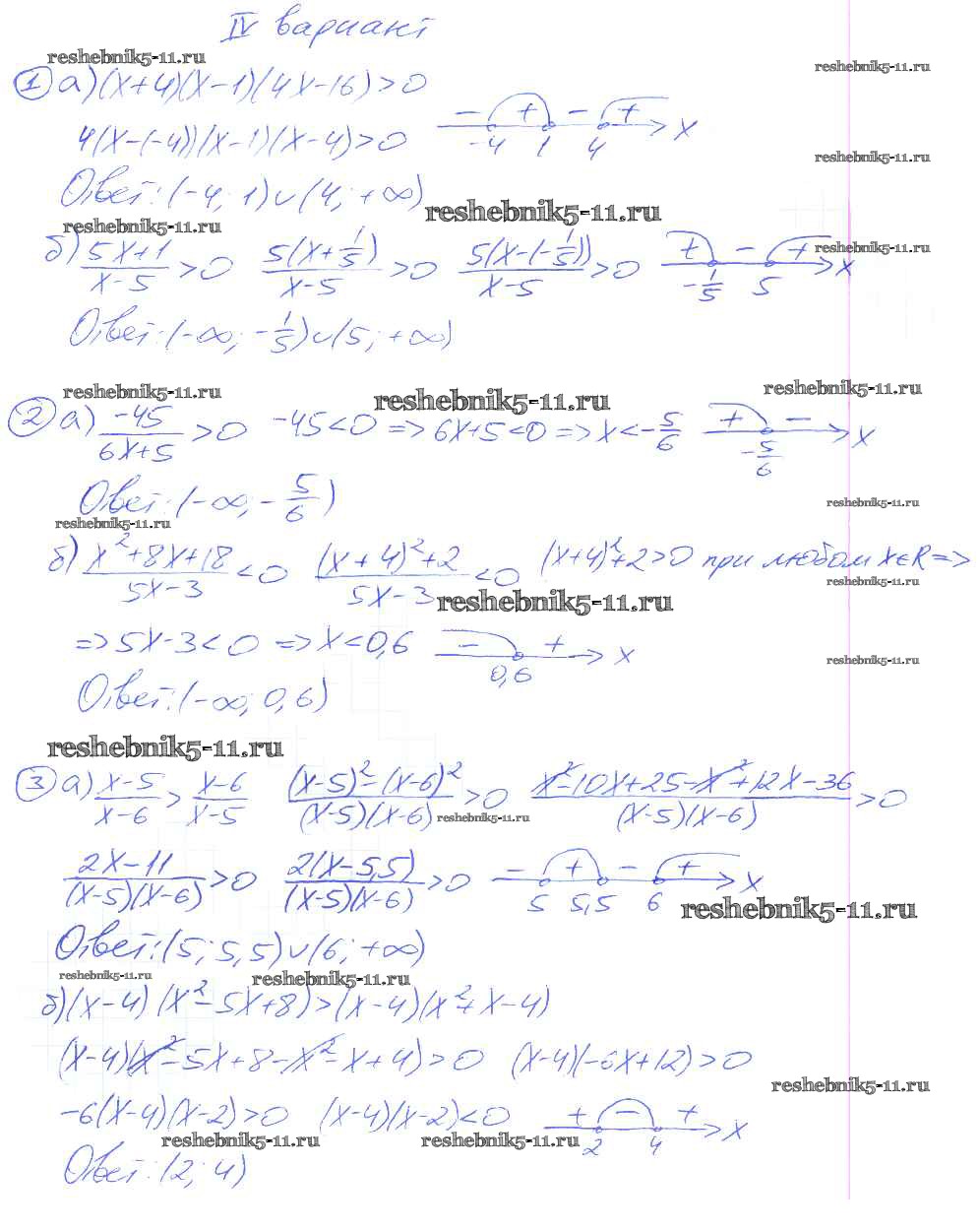 Готовая домашняя работа с ответами по Алгебре за 9 класс Потапов, Шевкин Дидактические материалы МГУ - школе Просвещение 2010 ФГОС - СР №7. Рациональные неравенства вариант 4