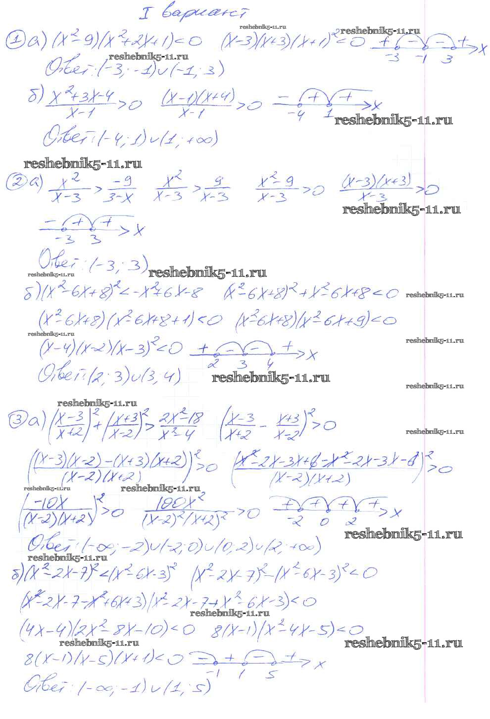 Готовая домашняя работа с ответами по Алгебре за 9 класс Потапов, Шевкин Дидактические материалы МГУ - школе Просвещение 2010 ФГОС - СР №8. Рациональные неравенства вариант 1