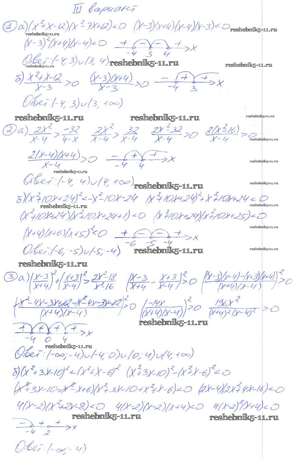 Готовая домашняя работа с ответами по Алгебре за 9 класс Потапов, Шевкин Дидактические материалы МГУ - школе Просвещение 2010 ФГОС - СР №8. Рациональные неравенства вариант 3