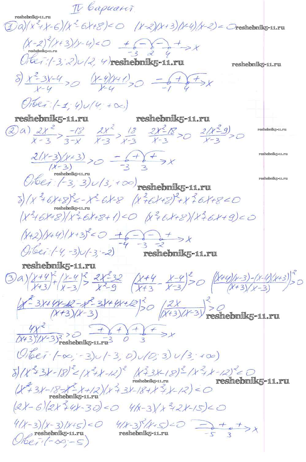 Готовая домашняя работа с ответами по Алгебре за 9 класс Потапов, Шевкин Дидактические материалы МГУ - школе Просвещение 2010 ФГОС - СР №8. Рациональные неравенства вариант 4