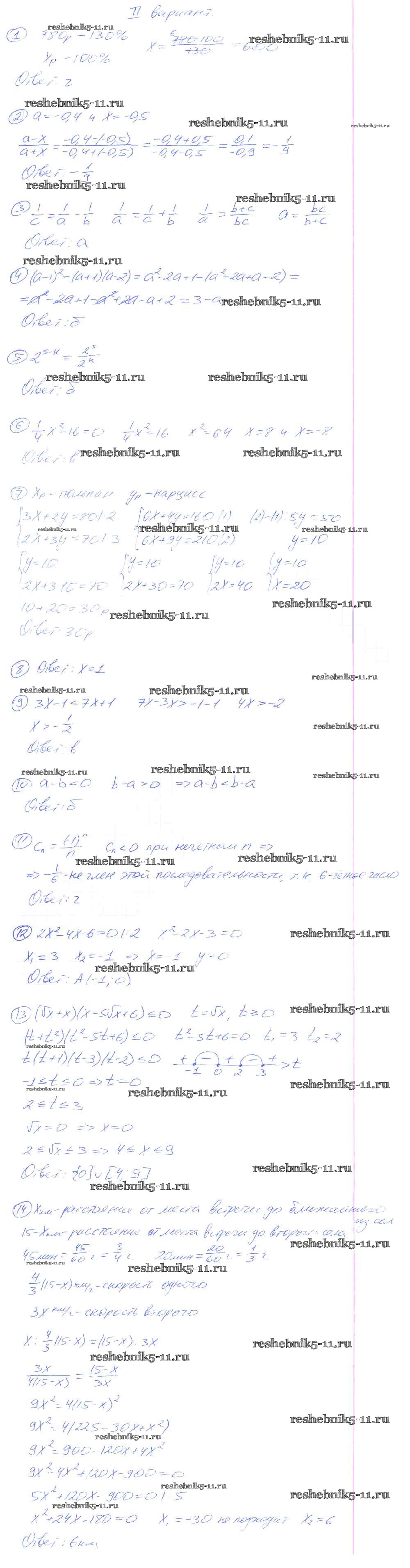 Готовая домашняя работа с ответами по Алгебре за 9 класс Потапов, Шевкин Дидактические материалы МГУ - школе Просвещение 2010 ФГОС - Тесты для самоконтроля Вариант 2