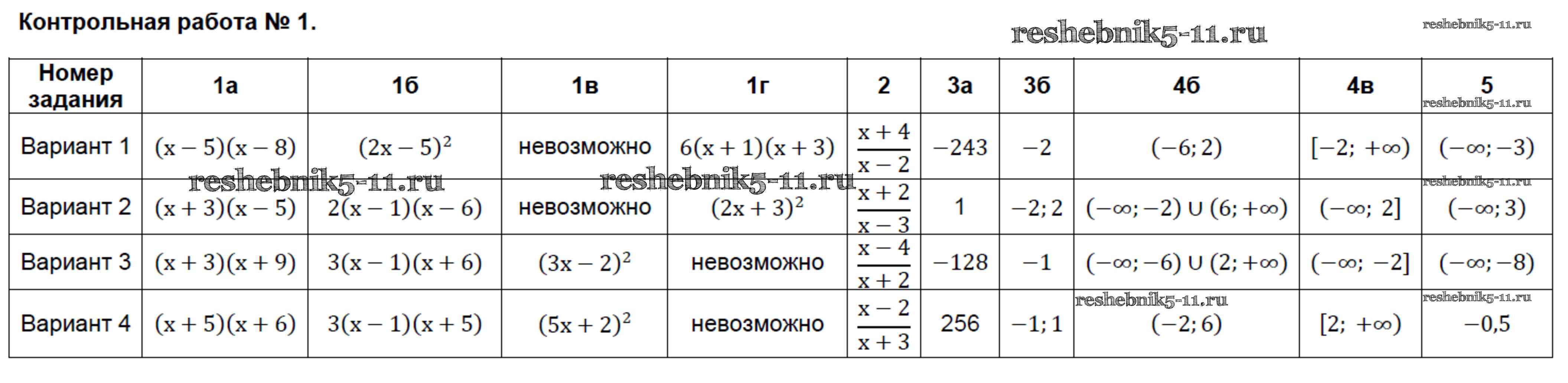 Готовая домашняя работа с ответами по Алгебре за 9 класс Глазков, Гаиашвили, Ахременкова Контрольно-измерительные материалы (КИМ) Экзамен 2014 ФГОС - Контрольные работы КР-1