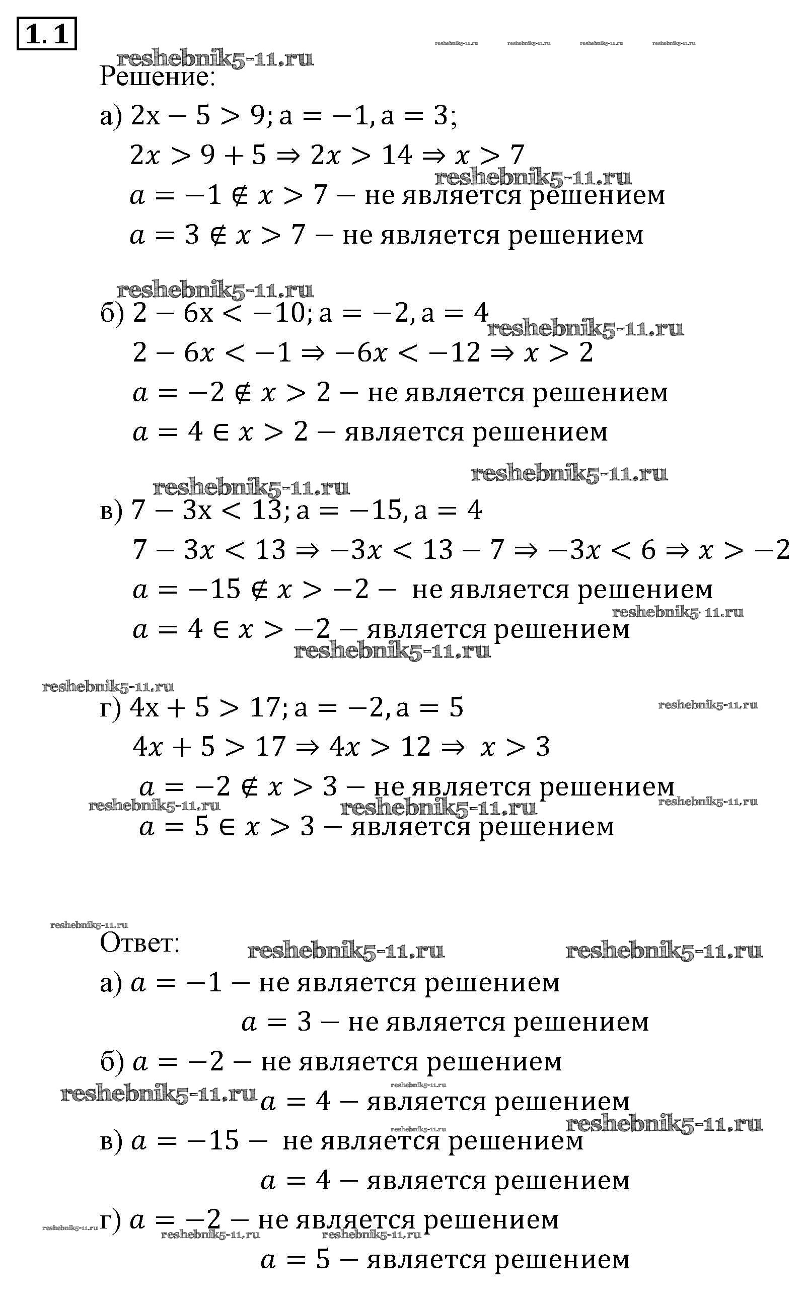 Готовая домашняя работа с ответами по Алгебре за 9 класс Мордкович, Александрова, Мишустина, Тульчинская, Семёнов Задачник Часть 2 Мнемозина 2010 ФГОС - § 1. Линейные и квадратные неравенства 1