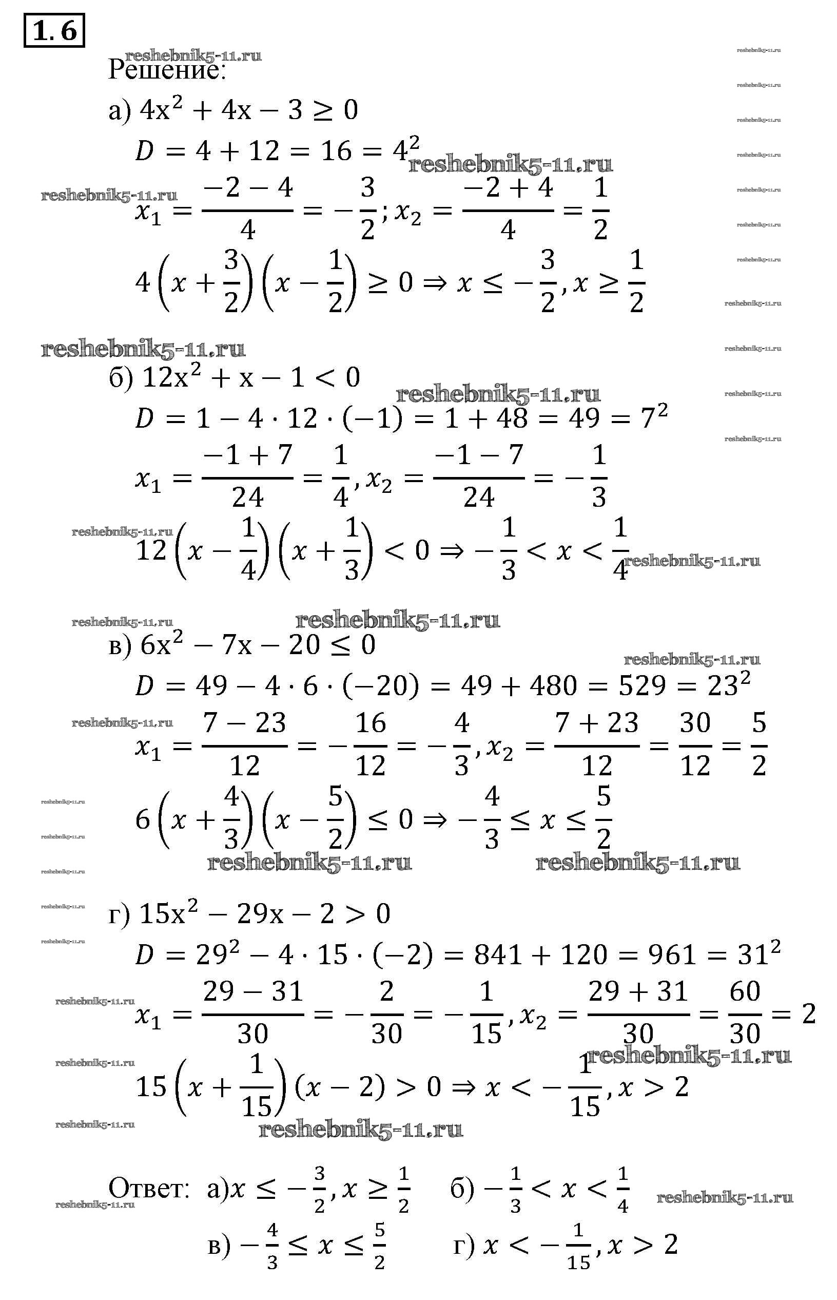 Готовая домашняя работа с ответами по Алгебре за 9 класс Мордкович, Александрова, Мишустина, Тульчинская, Семёнов Задачник Часть 2 Мнемозина 2010 ФГОС - § 1. Линейные и квадратные неравенства 6