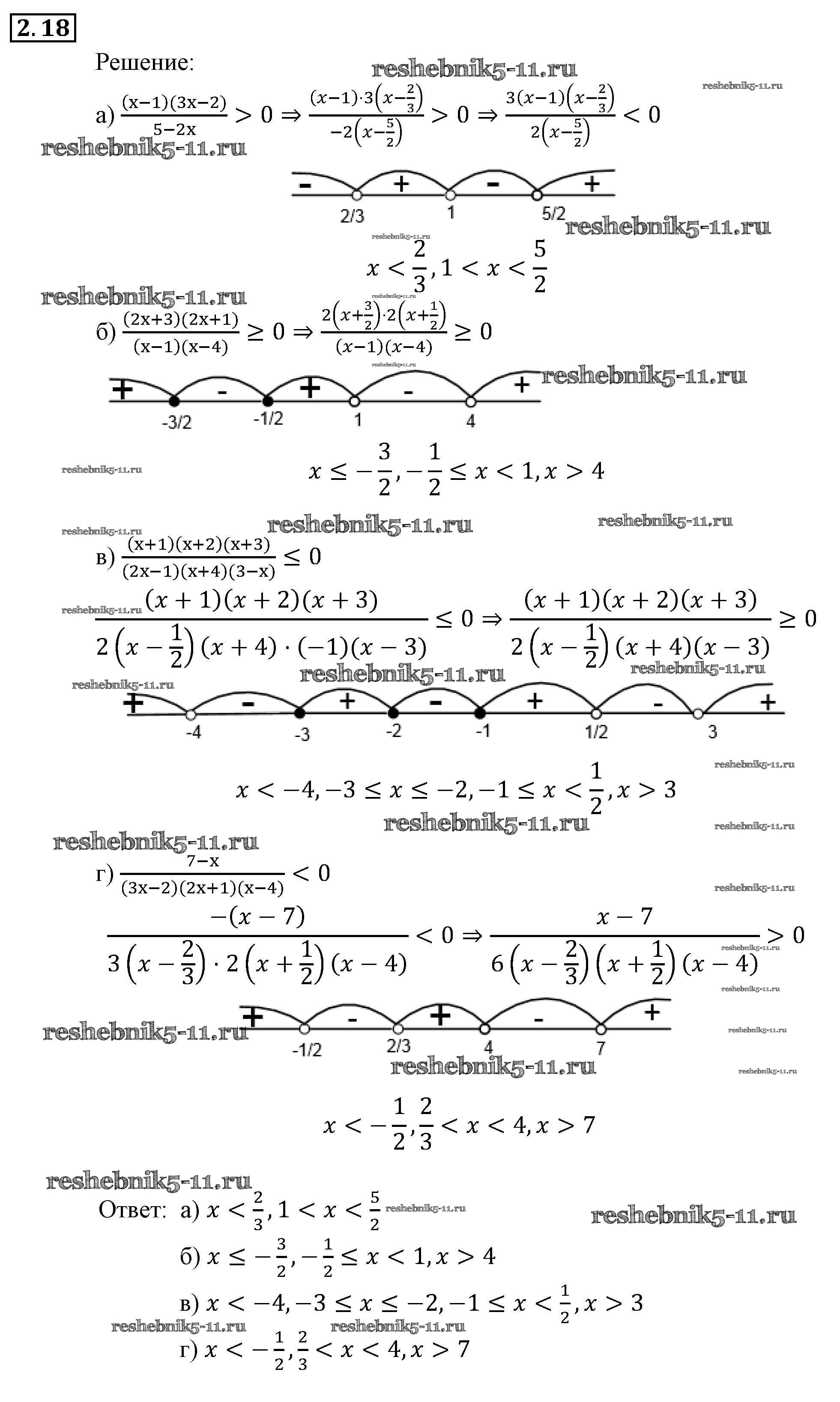 Готовая домашняя работа с ответами по Алгебре за 9 класс Мордкович, Александрова, Мишустина, Тульчинская, Семёнов Задачник Часть 2 Мнемозина 2010 ФГОС - § 2. Рациональные неравенства 18