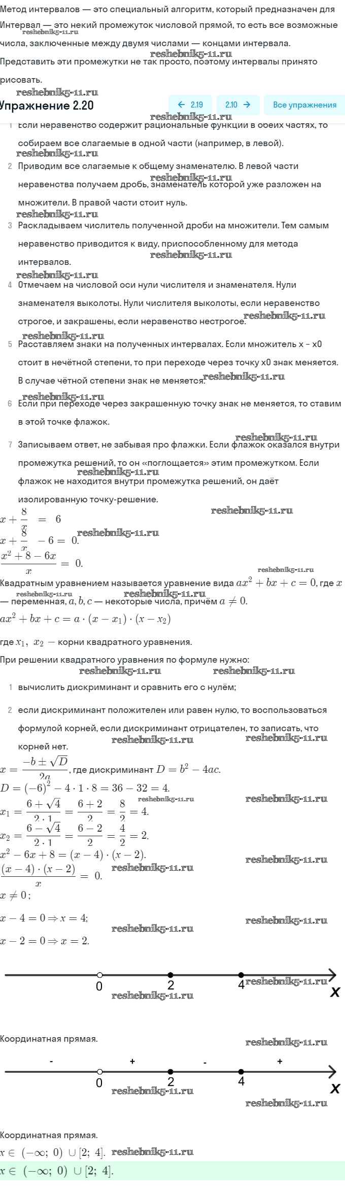 Готовая домашняя работа с ответами по Алгебре за 9 класс Мордкович, Александрова, Мишустина, Тульчинская, Семёнов Задачник Часть 2 Мнемозина 2010 ФГОС - § 2. Рациональные неравенства 2.20