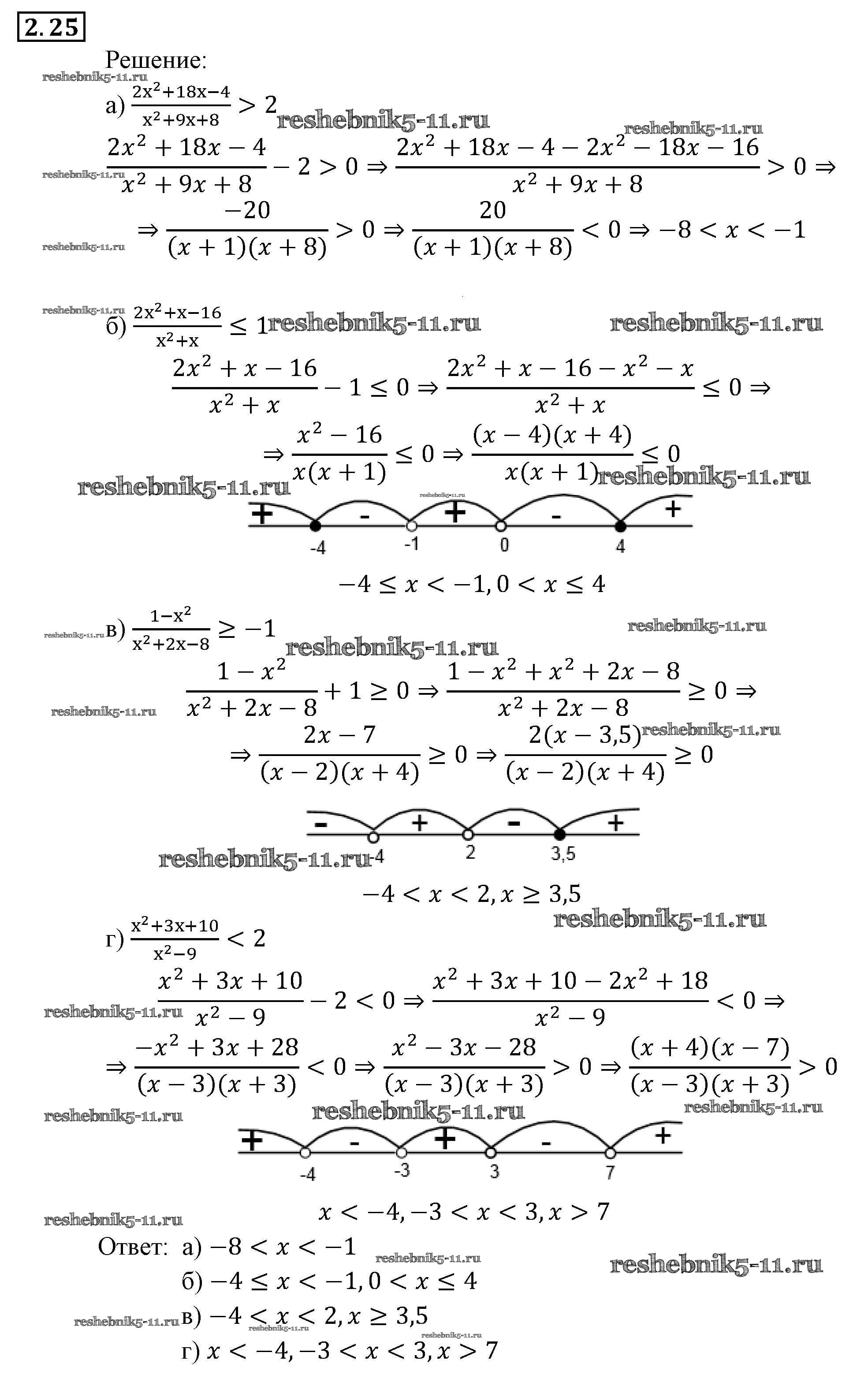 Готовая домашняя работа с ответами по Алгебре за 9 класс Мордкович, Александрова, Мишустина, Тульчинская, Семёнов Задачник Часть 2 Мнемозина 2010 ФГОС - § 2. Рациональные неравенства 25