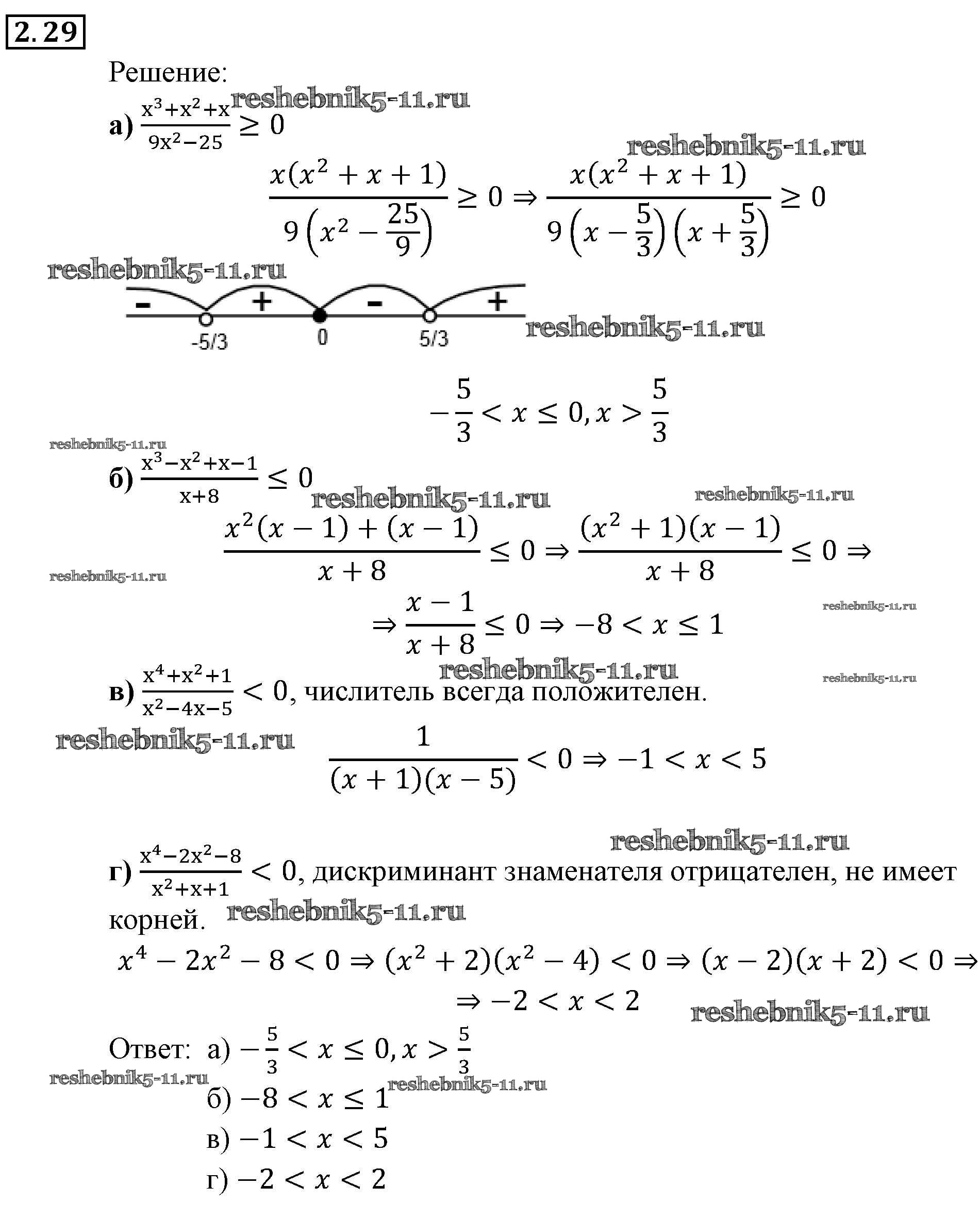 Готовая домашняя работа с ответами по Алгебре за 9 класс Мордкович, Александрова, Мишустина, Тульчинская, Семёнов Задачник Часть 2 Мнемозина 2010 ФГОС - § 2. Рациональные неравенства 29