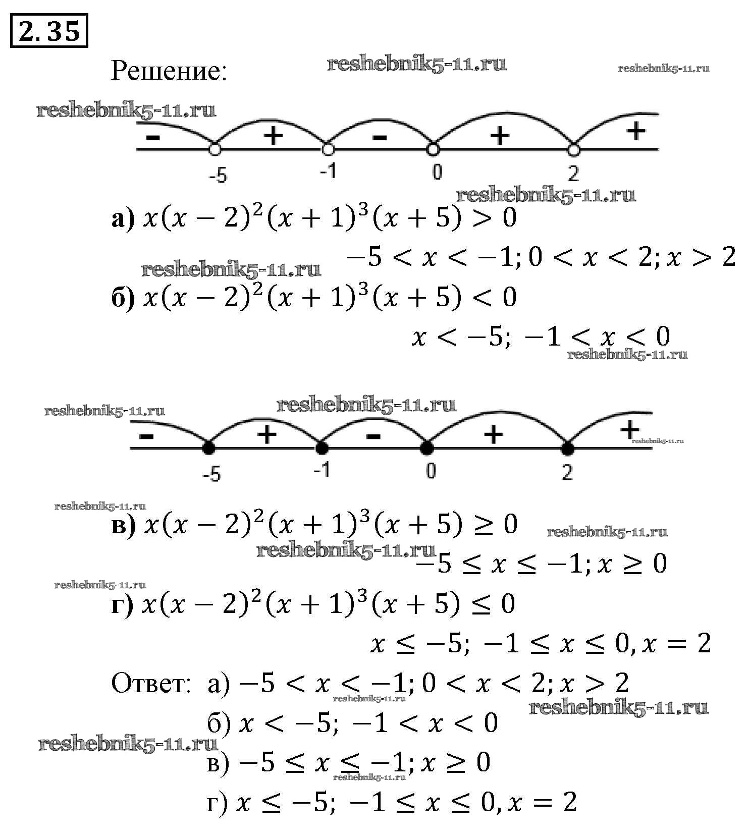 Готовая домашняя работа с ответами по Алгебре за 9 класс Мордкович, Александрова, Мишустина, Тульчинская, Семёнов Задачник Часть 2 Мнемозина 2010 ФГОС - § 2. Рациональные неравенства 35