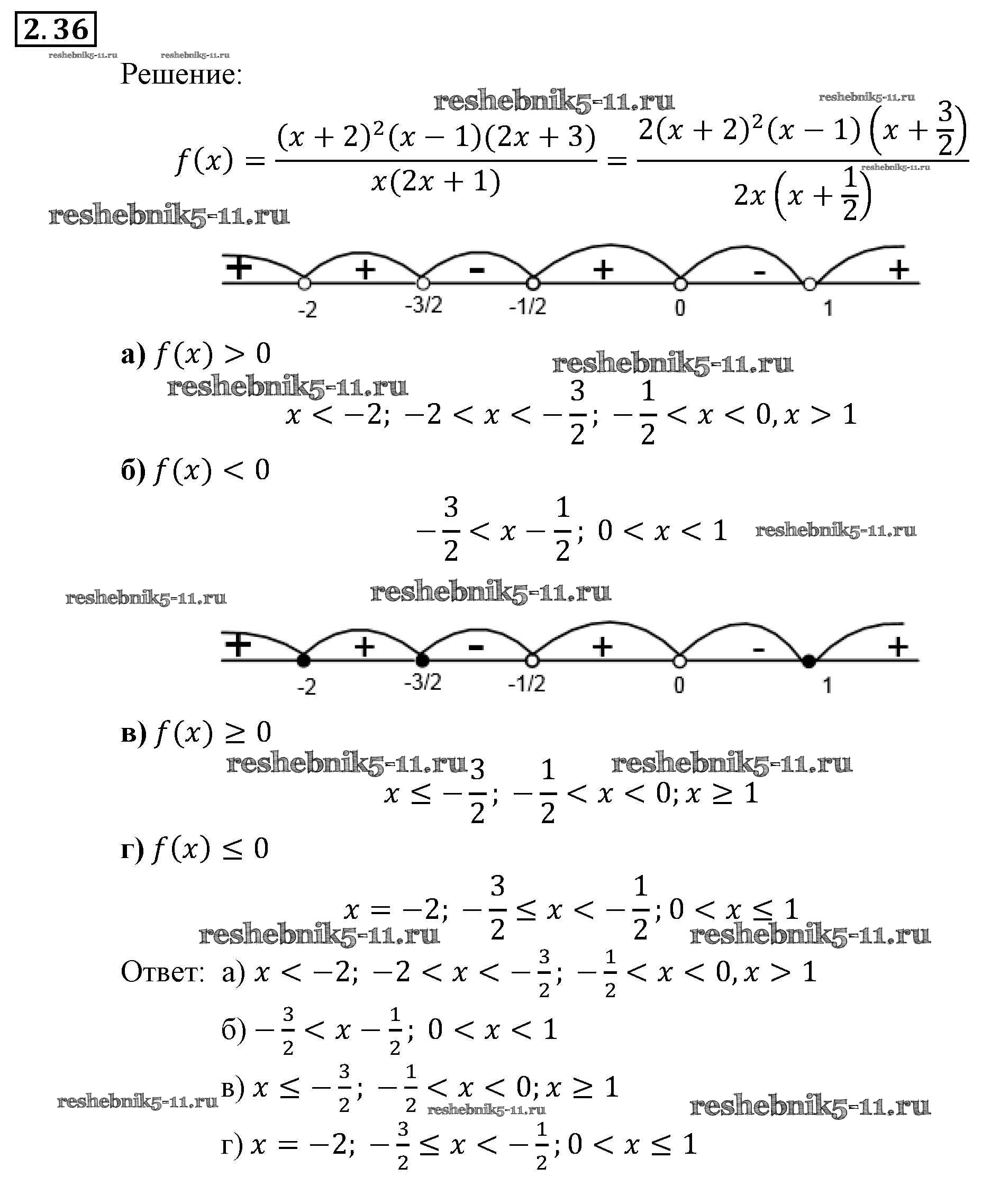 Готовая домашняя работа с ответами по Алгебре за 9 класс Мордкович, Александрова, Мишустина, Тульчинская, Семёнов Задачник Часть 2 Мнемозина 2010 ФГОС - § 2. Рациональные неравенства 36
