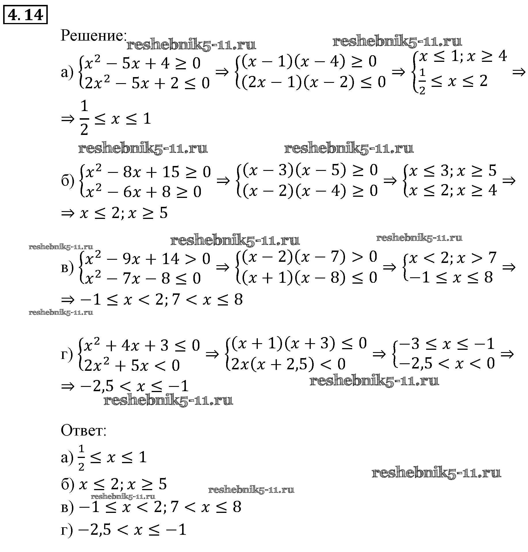 Готовая домашняя работа с ответами по Алгебре за 9 класс Мордкович, Александрова, Мишустина, Тульчинская, Семёнов Задачник Часть 2 Мнемозина 2010 ФГОС - § 4. Системы рациональных неравенств 14
